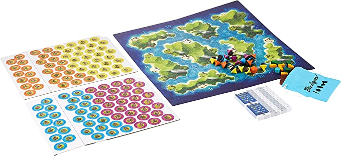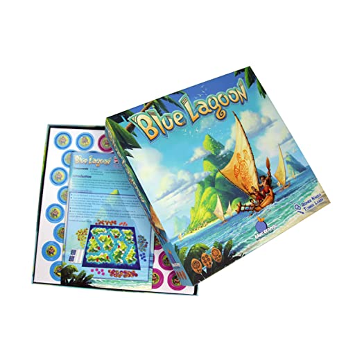 Blue Lagoon is a set collection game with an area control mechanic. Each player manages a group of settlers that spread out on the islands of a newly-discovered archipelago, discovering its wealth and building villages as they explore. Points are awarded for collecting resources and settling on the islands. Smart placement and anticipation are needed to win.