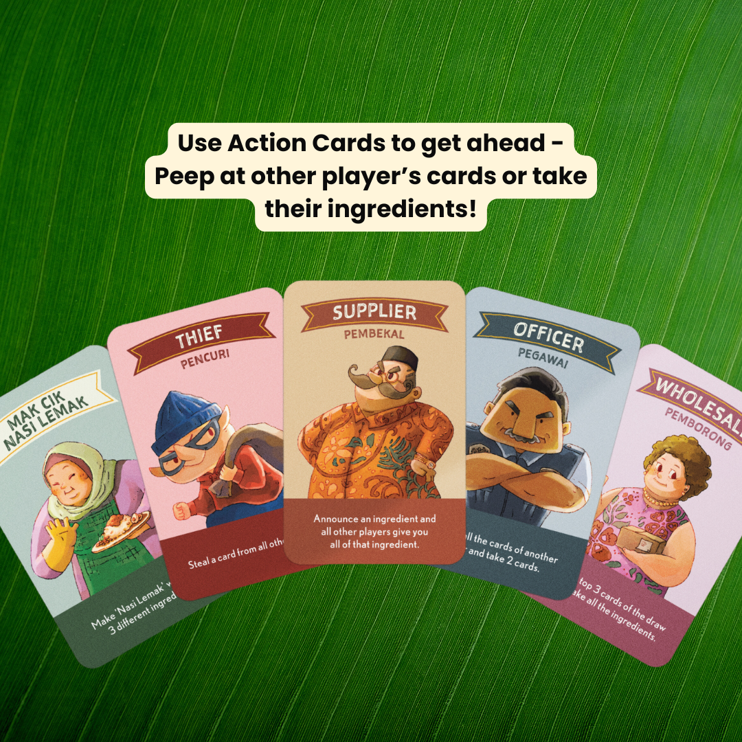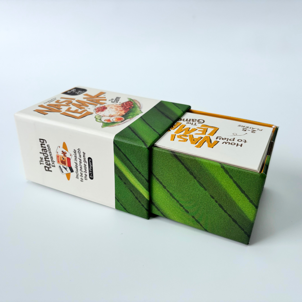 Nasi Lemak is a fun and competitive card game designed for 2 to 5 players, with a playtime of 15 to 30 minutes.