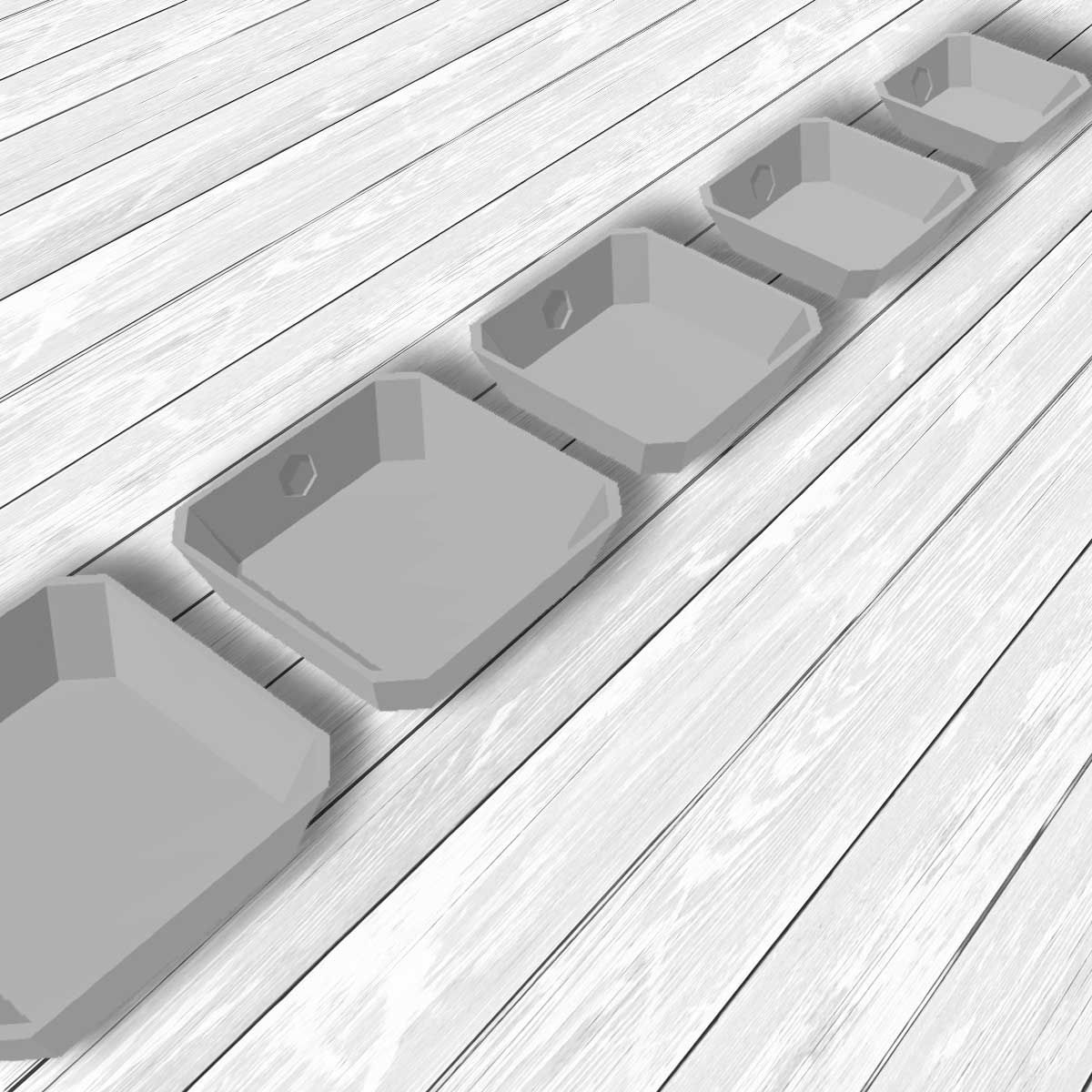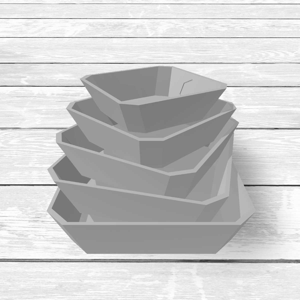 - 5 Nested Trays - 1 Large (100mm x 100mm x 25mm), 2 mediums and 2 small trays